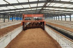 然后翻堆機(jī)橫跨在雞糞條堆上邊,對(duì)原料進(jìn)行均勻翻堆、攪拌、破碎,讓雞糞和干料輔料和菌種充分?jǐn)嚢杈鶆,翻堆機(jī)兼有破碎功能,即使雞糞或干料輔料有大塊,在翻堆機(jī)的作用下也可以將大塊打開、打碎。翻堆機(jī)翻堆過后,形成新的一個(gè)條垛,并且新堆體是蓬松、松散狀態(tài),為物料發(fā)酵創(chuàng)造了一個(gè)有利的好氧狀態(tài),有利于有機(jī)肥的生產(chǎn)發(fā)酵。